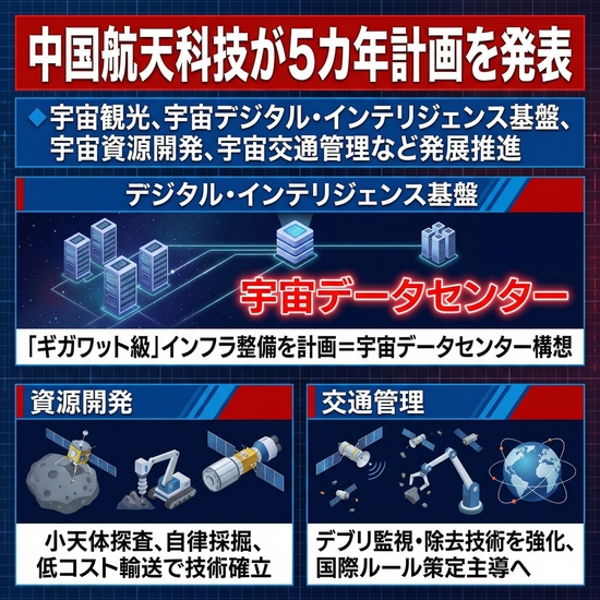 中国航天科技が5カ年計画、宇宙DC構想始動