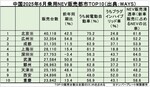中国:6月の都市別乗用NEV販売、北京4万台でトップ浮上
