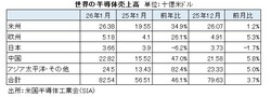 世界全体の売上高は825億4000万米ドル。中国の売上高シェアは27.6%で、米州(32.0%)とアジア太平洋・その他(29.7%)に次ぐ3位だった。首位の米州は前年同月比34.9%増の263億8000万米ドルだった。